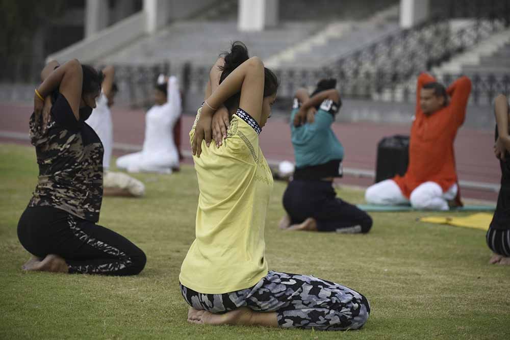 当地时间2021年6月20日,印度古尔冈,当地民众做瑜伽迎接国际瑜伽日。人民视觉 图