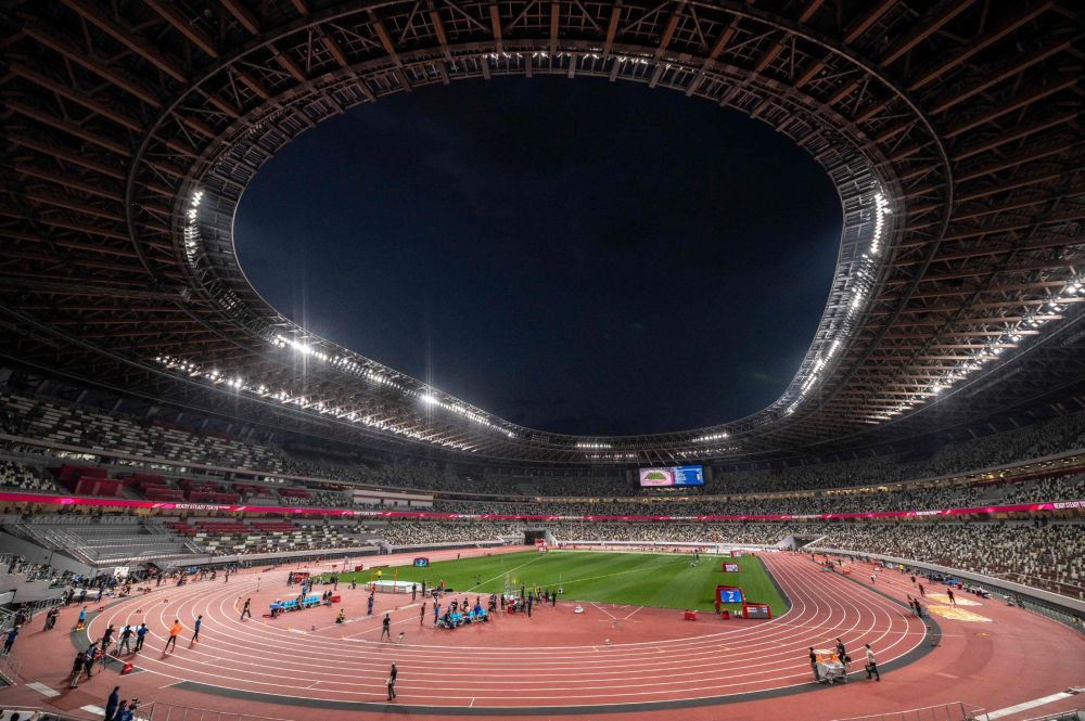这是5月9日拍摄的东京奥林匹克体育场内进行的东京奥运会田径测试赛现场。新华社/法新