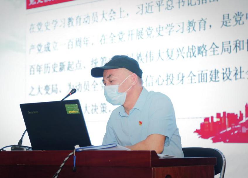 ▲深圳市股票收藏协会会长陆剑洪讲授党课