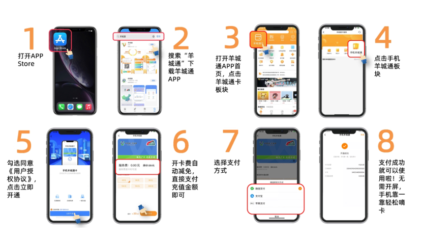此外,苹果用户还可以通过岭南通APP、Apple钱包,按照提示步骤添加手机羊城通卡,享受限时免费开卡福利。