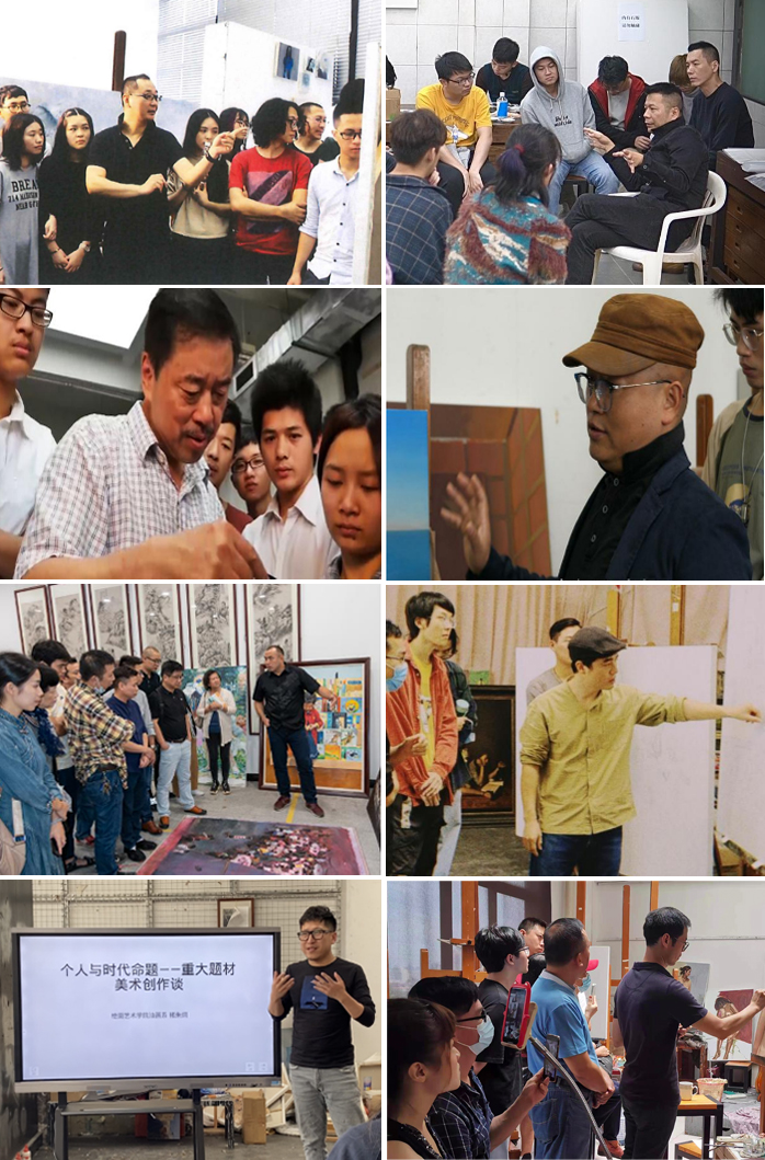 3、深化艺术实践,以主题创作实践为特色促进人才培养,《油画》课程践行为谁培养人的问题。千载寂寥,披图可鉴,重大题材创作往往最能感召家国情怀。从艺术与思政先天的亲缘性出发,对构建特色思政教育模式进行深入探索。课程团队通过积极主持“中华文明历史题材美术创作工程”“最美中国人——庆祝中国共产党第十九次全国代表大会胜利召开大型美术作品展”“大潮起珠江——庆祝改革开放四十年美术创作工程”“不忘初心 继续前进——庆祝中国共产党成立100周年美术创作工程”等大型主题性创作项目,开展主题创作教学引领和示范,“以研促教、以展促学”,引导学生坚持以人民为中心的创作导向,躬行实践,把艺术起点建立在厚重的红色文化上,点燃热情与信仰。