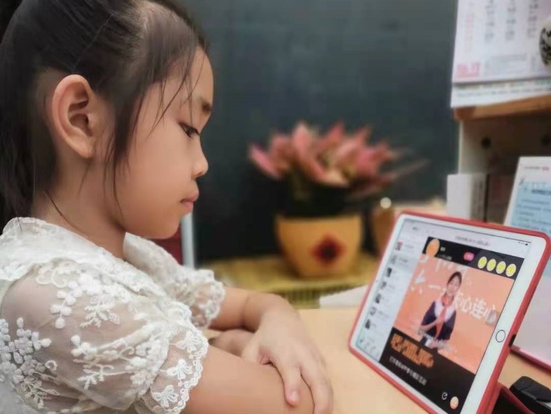 ▲6月1日,增滘小学的学生在家观看荔湾区教育局连线贵州省毕节市七星关区和金沙县等五地少年儿童的直播节目,度过了一个别样的儿童节。在暂停线下教学的这段时间里,学校通过线上课堂,推进教学工作。