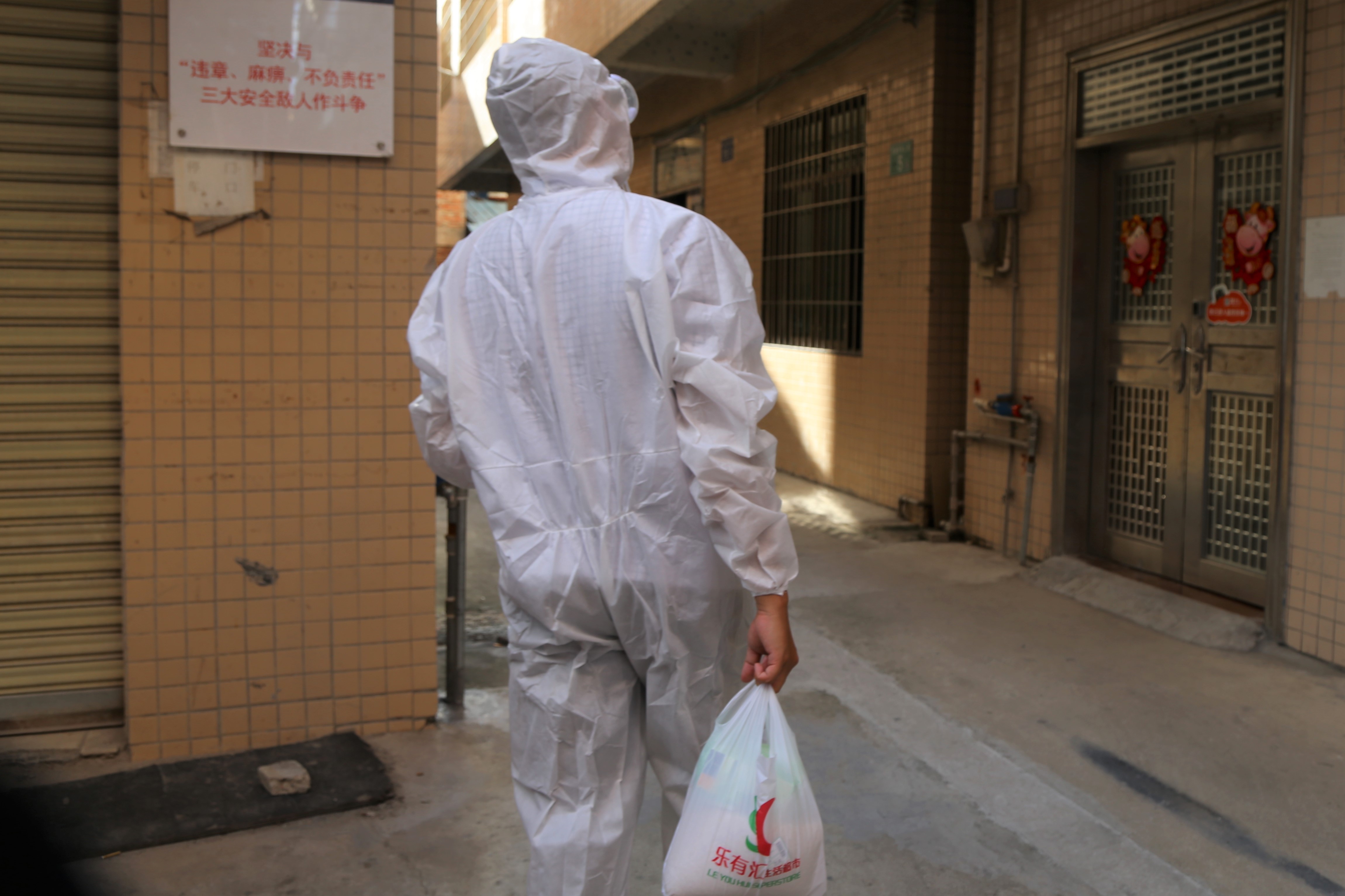 ▲6月16日,海龙街道开展第6轮大规模核酸检测。刚在核酸检测点忙完的医务者与街道社区工作人员,匆匆扒了几口饭,开始穿行在各个社区,上门为行动不便的居民做核酸检测。夜幕降临,他们仍在城中村的握手楼中奔走着。