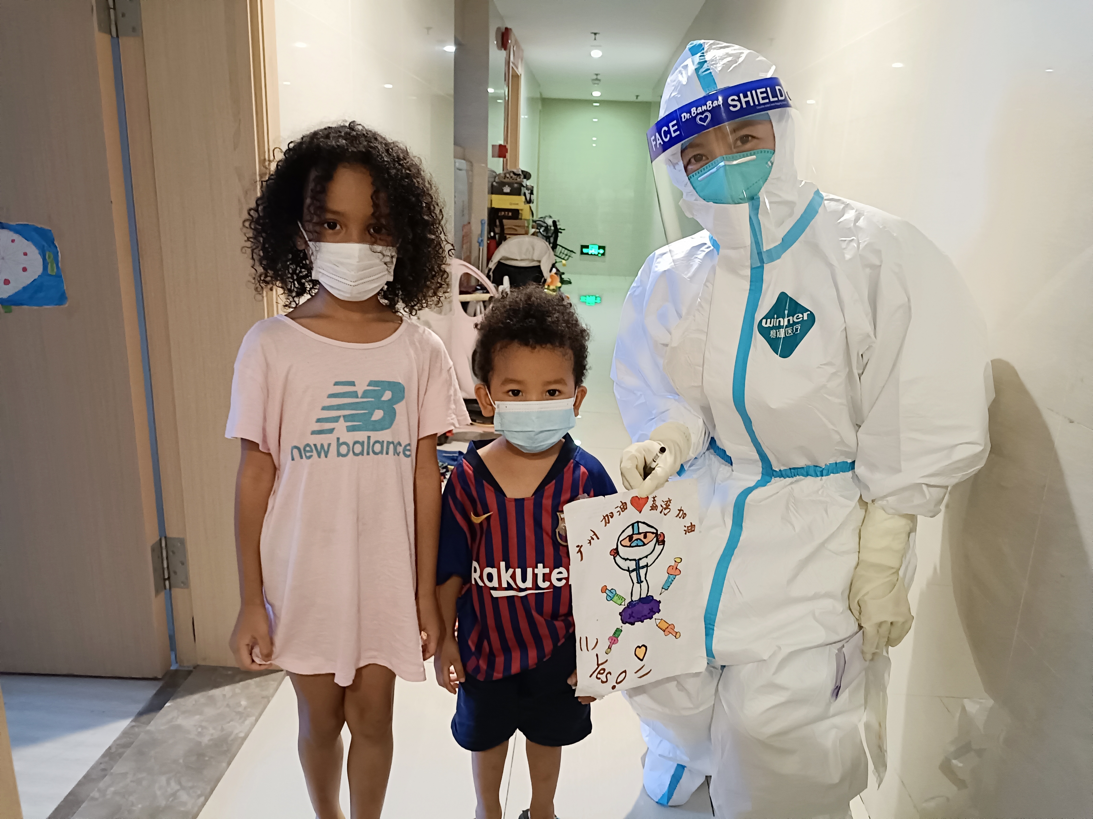 ▲6月8日,像往常一样上门为社区居民做健康监测的社区卫生中心医生,收到了一张中非混血小朋友绘制的卡片。