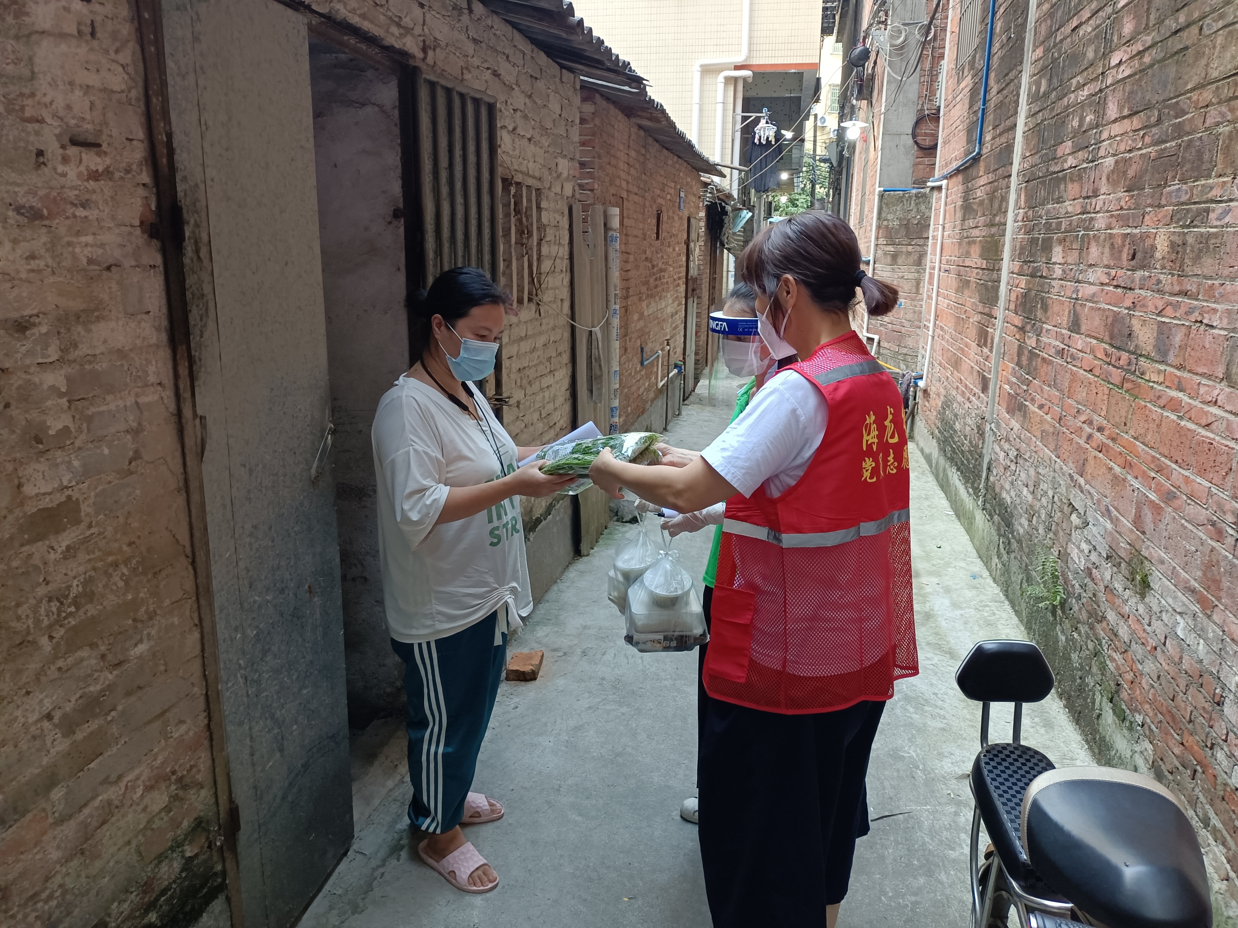 ▲6月4日,海龙街社区党组织为贫困家庭、孤寡老人、滞困人员送上爱心餐、蔬菜瓜果、口罩、米油、清凉饮料等生活物资,并将群众需求记录在案,根据物资储备、缓急程度等情况,逐一进行解决。