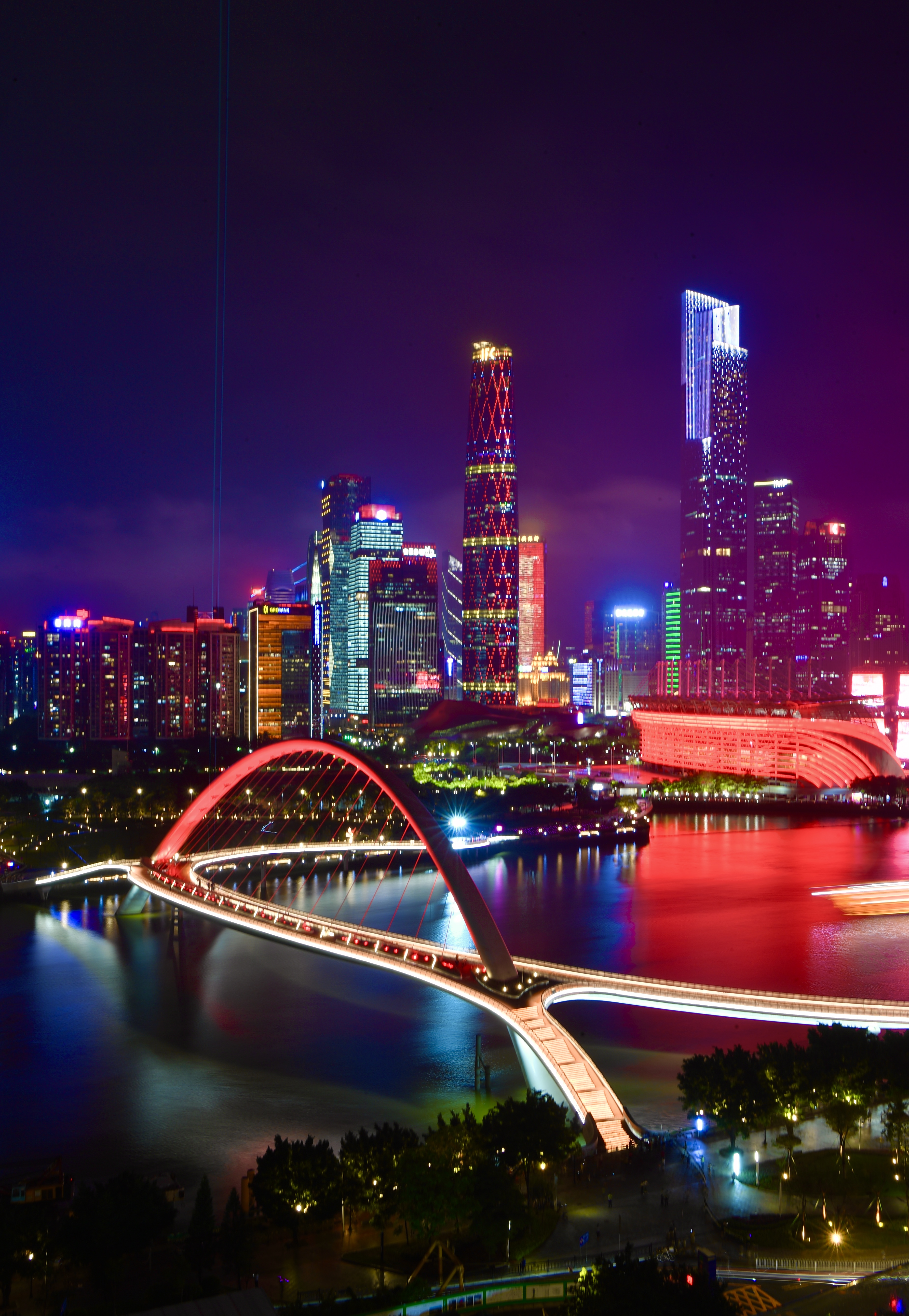 今天晚上,这座被命名为”海心桥“的人行桥举行亮灯仪式,首次亮灯即迅速融入广州中轴线的夜景中,流光溢彩。