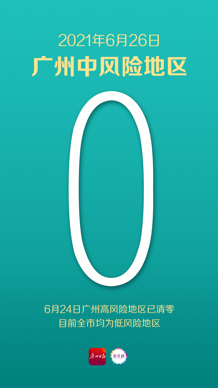此前,全市高风险地区已于6月24日清零;今天,全市中风险地区清零。目前广州市全市均为低风险地区。