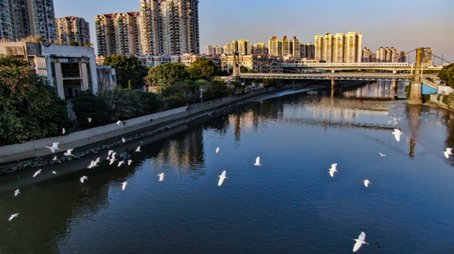 水质变清的远不止夏茅村的风水塘。为保卫碧水,白云区大力整治黑臭水体,拆除临河违建,减少污染源。如今,纳入国家城市黑臭水体监管平台的31条河涌全部消除黑臭,石井河、新市涌、沙坑涌、白海面涌、泥坑涌等一批过去曾经污染严重的黑臭河涌,已达到V类或以上水质。石井河上白鹭飞,跃进河边悠然垂钓者众,大源村的孩子在沙坑涌戏水捉虾……随着水质的改善,白云区多条河涌呈现出水草丰茂、鱼翔浅底、候鸟来栖的景象。