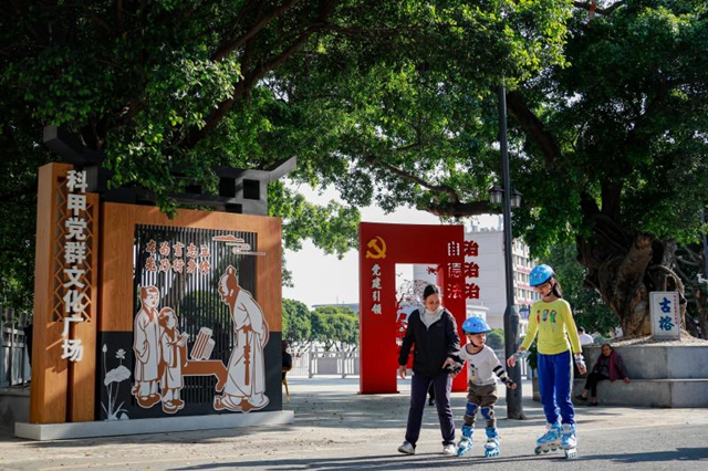 经过容貌示范社区创建,嘉禾街科甲社区迎来大变身。图为科甲社区党群文化广场。