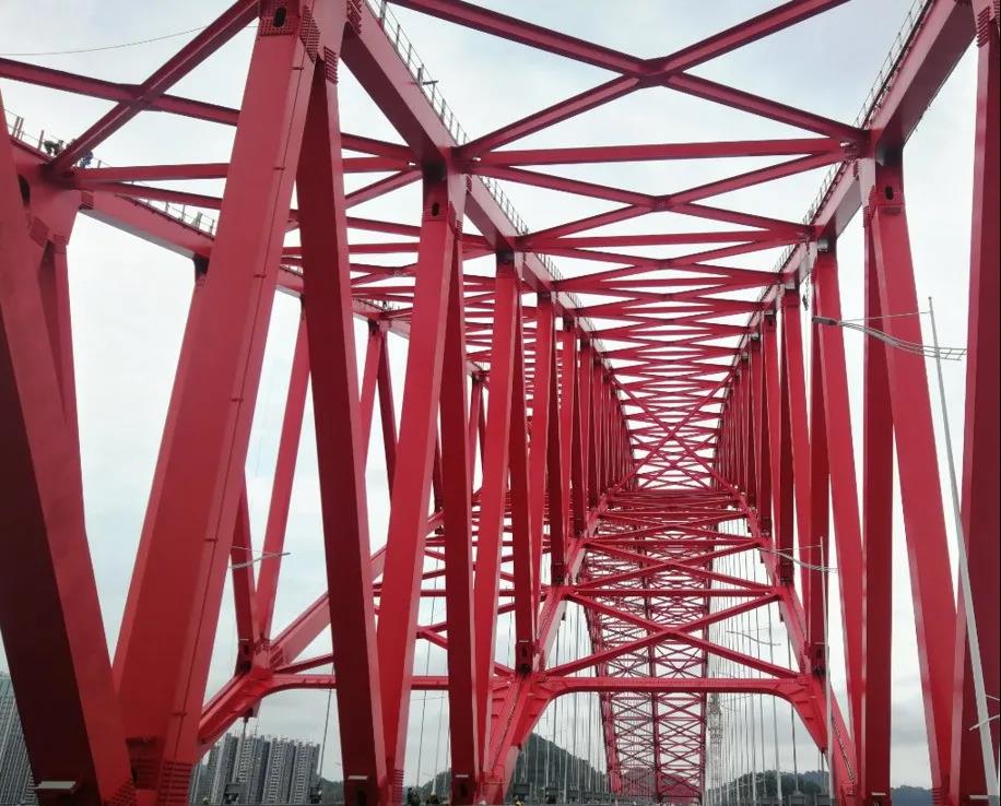 2、新式大跨刚性桁梁桁拱组合结构体系:主桥采用刚性桁梁作为系梁,有利于车行平顺,同时降低了系梁的架设难度,提升了施工速度。