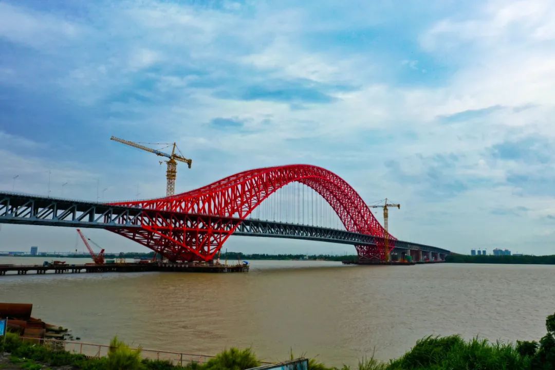 1、市政桥梁建设新标杆:明珠湾大桥主跨436米,主桥桥面宽度43.2米,为跨度最大、桥面最宽、交通功能强大的市政双层桥面三主桁钢桁拱桥。