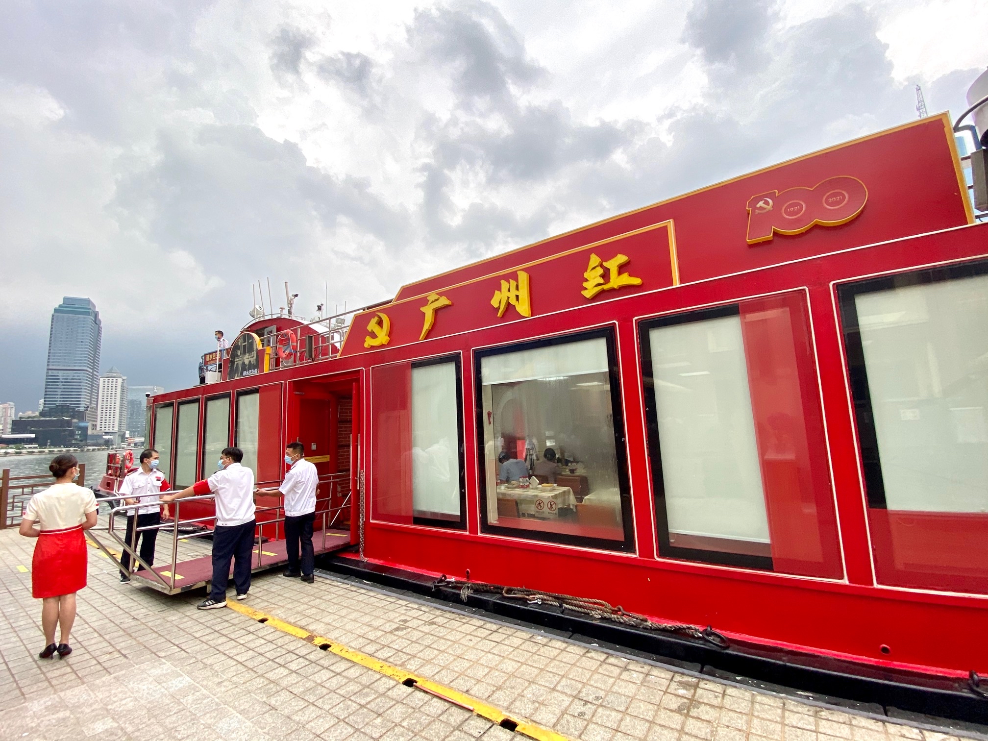 6月28日,“广州红”主题船正式启航。“广州红”主题船的船身为红色,一楼船舱参照中共三大会址部分场景进行布置。同时,该主题船结合特色码头资源和广州红色文化资源,设有8条“红联水岸”党建品牌党史学习主题航线,以水岸联动方式构建党建活动全新阵地,为社会、校企打造研学及爱国主义教育平台。