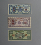 南方人民银行发行的、在解放区使用的壹元、伍元、拾元纸币
