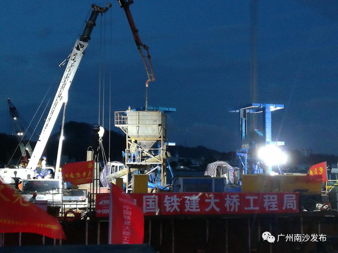明珠湾大桥连夜施工,主桥27号主墩顺利浇筑。
