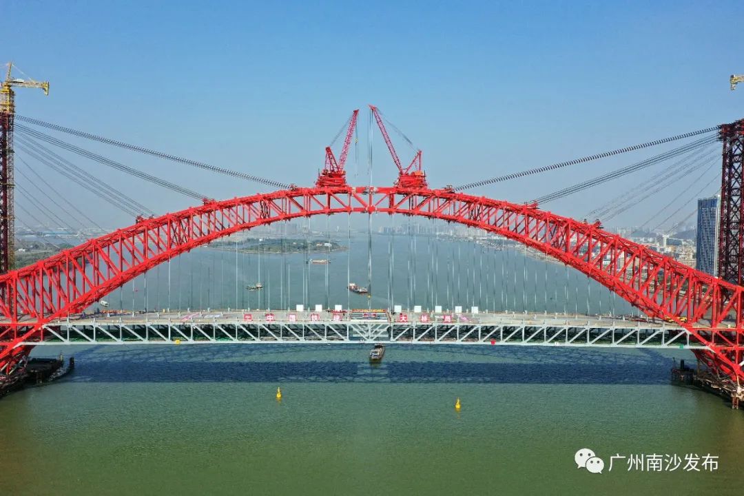 2021年2月,明珠湾大桥主桥合龙,进入桥面系施工阶段;