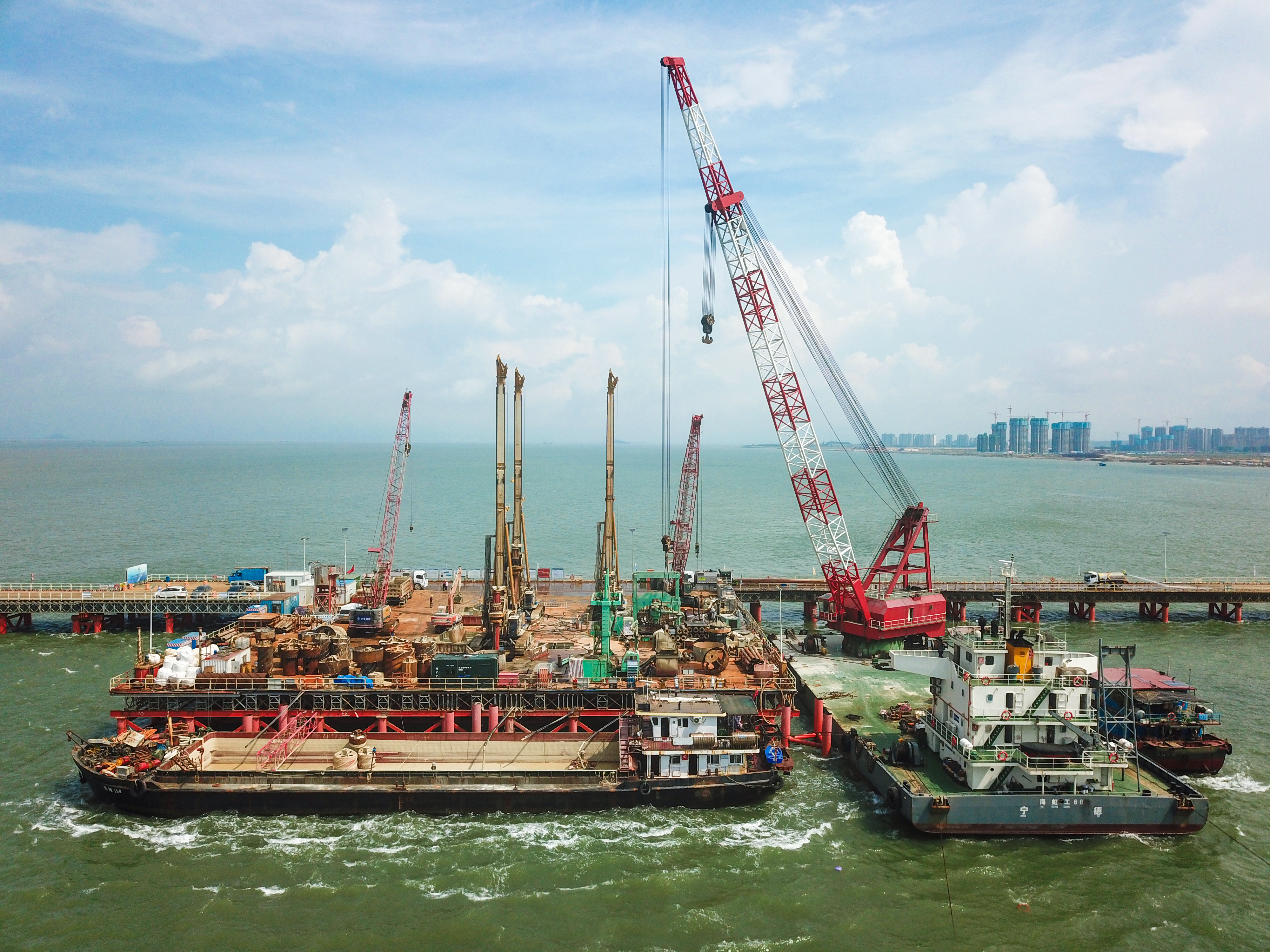 据悉,为确保钻孔桩施工顺利推进,保证成孔质量,项目部抢在台风季节来临之前,通过优化施组及施工工艺、保障资源配置、技术措施先行,充分克服了海中桥梁施工组织难度大、基岩强度高、超厚淤泥层钢护筒打设精度要求高、超深斜面岩层入岩进尺慢、超长海上桩基垂直度控制难度大等不利因素影响,较预期目标提前了近两个月时间,为全线安全优质施工打下了坚实的基础。