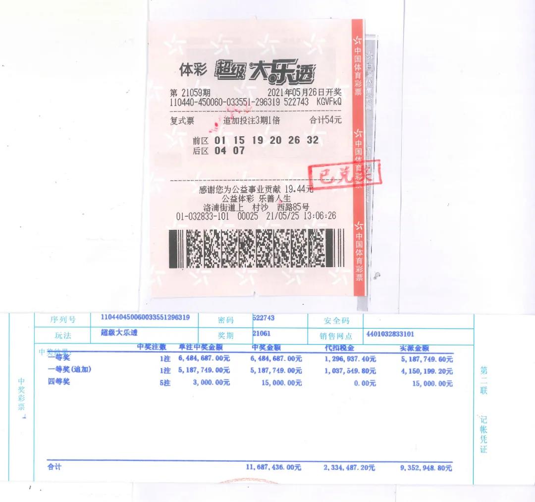 体彩大乐透第21061期,全国共中出7注一等奖,其中1注1167万多元的追加头奖落入广东,广州番禺区4401032833实体店一购彩者以3期多期投注的6+2追加小复式票命中,单票总投注额只有54元,在中得1注1167万多元追加头奖之余,还中得5注四等奖,单票总奖金1168万多元。今年,广州已中出7个电脑型体育彩票头奖。