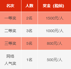 主办方将为获奖者颁发证书、奖状、奖金奖品。
