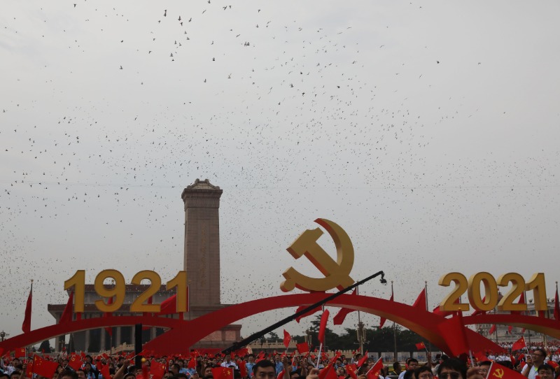 7月1日上午,天安门广场,庆祝中国共产党成立100周年大会,10万羽和平鸽展翅高飞,礼赞和平。这是北京市民的心意,也是亿万中华儿女对党的百年华诞的美好祝福。