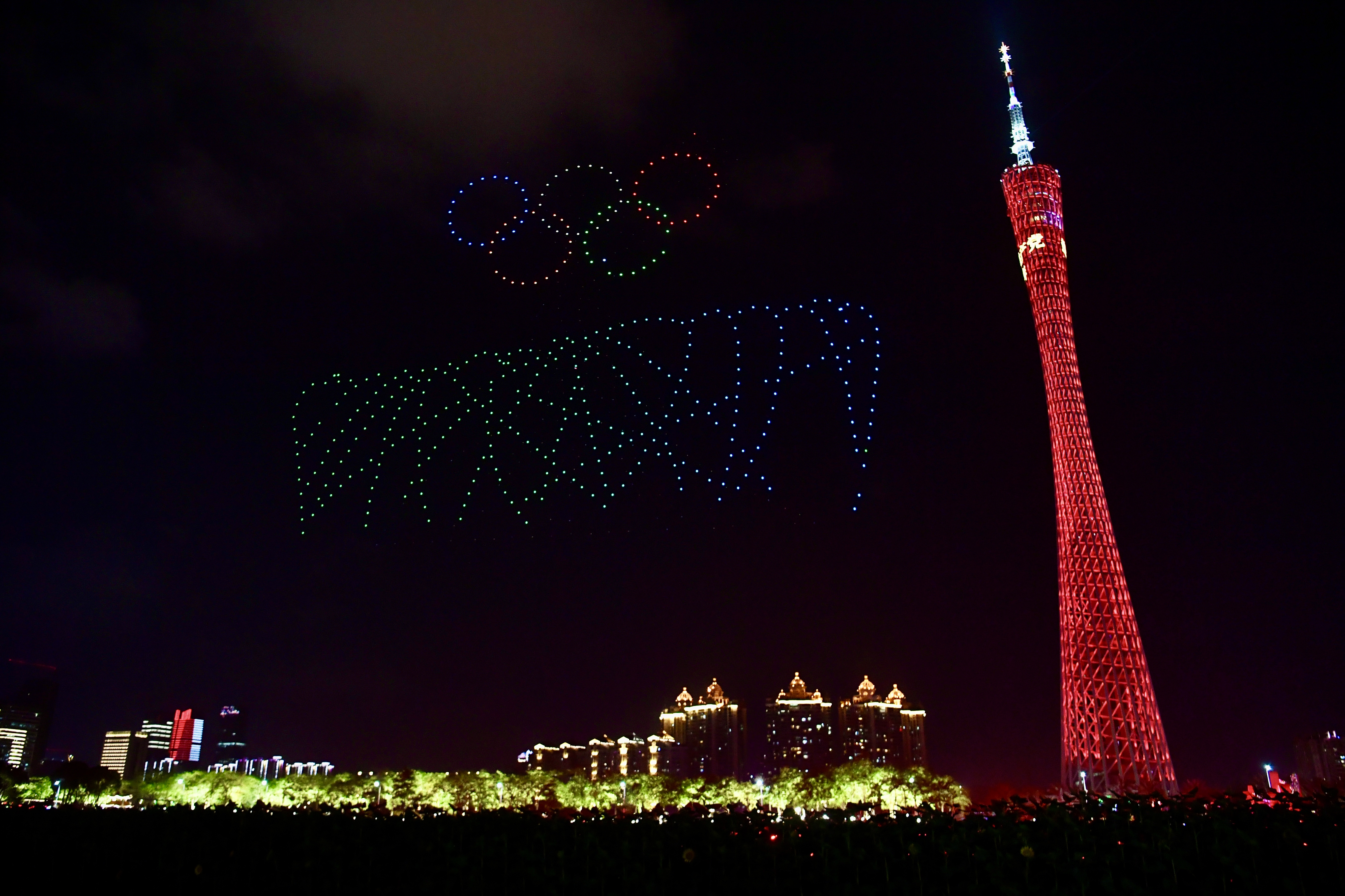 珠水潋滟,倒映出海心桥流转变幻的水袖之舞;广州塔旁,1000架无人机凌空翩跹,展开绚丽壮观的光影画卷。