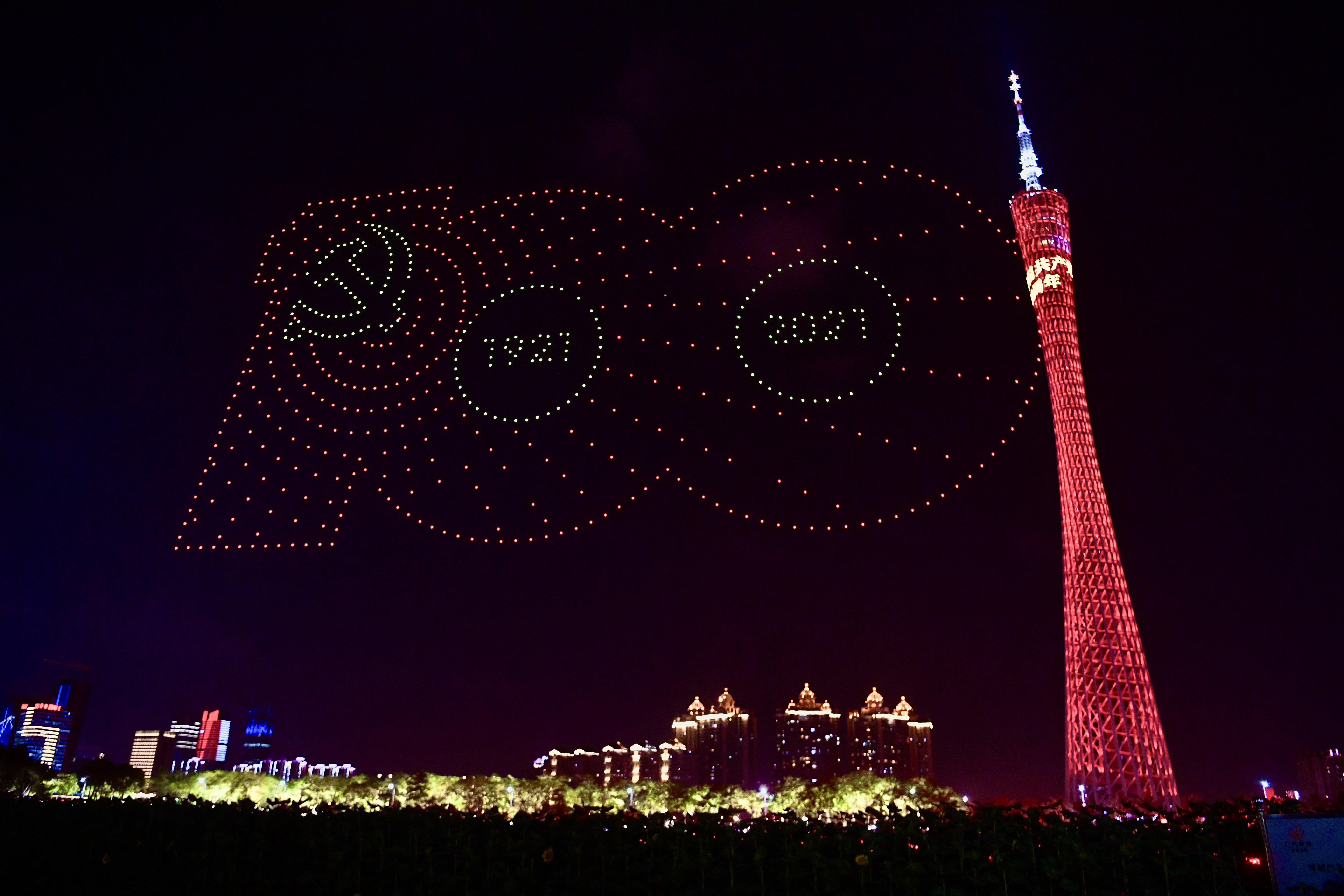 中共三大召开、新中国成立、香港澳门回归、神舟十二号升空、“七一勋章”颁授……30日晚,广州海心沙,1000架无人机在夜空勾勒出中国共产党的百年奋斗之路,与珠江两岸璀璨的灯光秀交相辉映,为即将到来的中国共产党百年华诞献上祝福。