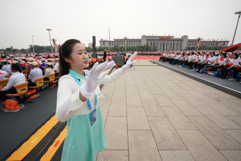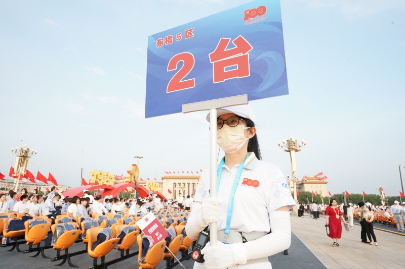 大会现场设置座椅超七万席,这个数量在历年的庆祝活动中是最多的,分布在观礼台、长安街区域和广场区域。比起国庆70周年庆典的座椅数量,增加了一倍多,座椅分红、黄、橙、绿、青、蓝6种颜色。“7万多的座椅,要按照颜色安置在指定区域,在有限的时间内完成搭建和撤场无疑是一项异常艰巨的任务。相比于搭建,撤场时间更为紧张,难度更大。”北京建工集团董事马铁山说道。