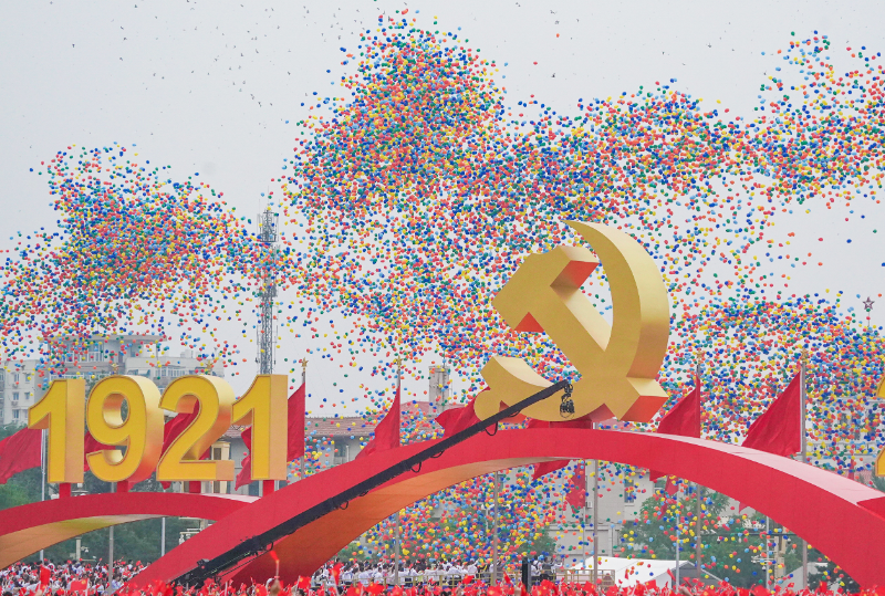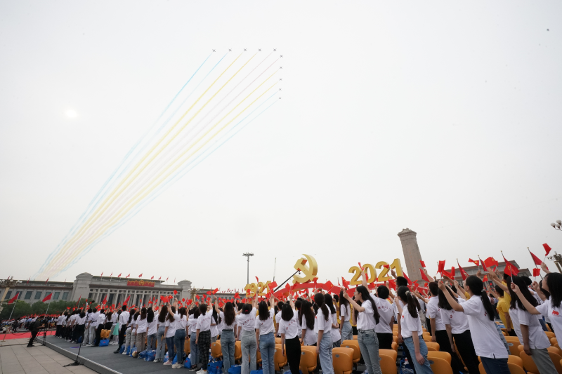 宏伟的党徽,七万多席的座椅,七万多平方米的地毯,一百面矗立的红旗,硕大的LED显示屏,以及广场花卉装饰……从设计图纸转为实物,所有的这些要素建设都是由庆祝大会服务保障和广场活动指挥部(以下简称“庆广指”)的工程建设部完成的。从统筹设计流程,到实操演练,再到转运进场搭建,直至拆卸撤场,工程建设部的工作贯穿全程,确保了庆祝中国共产党成立100周年大会的圆满成功。