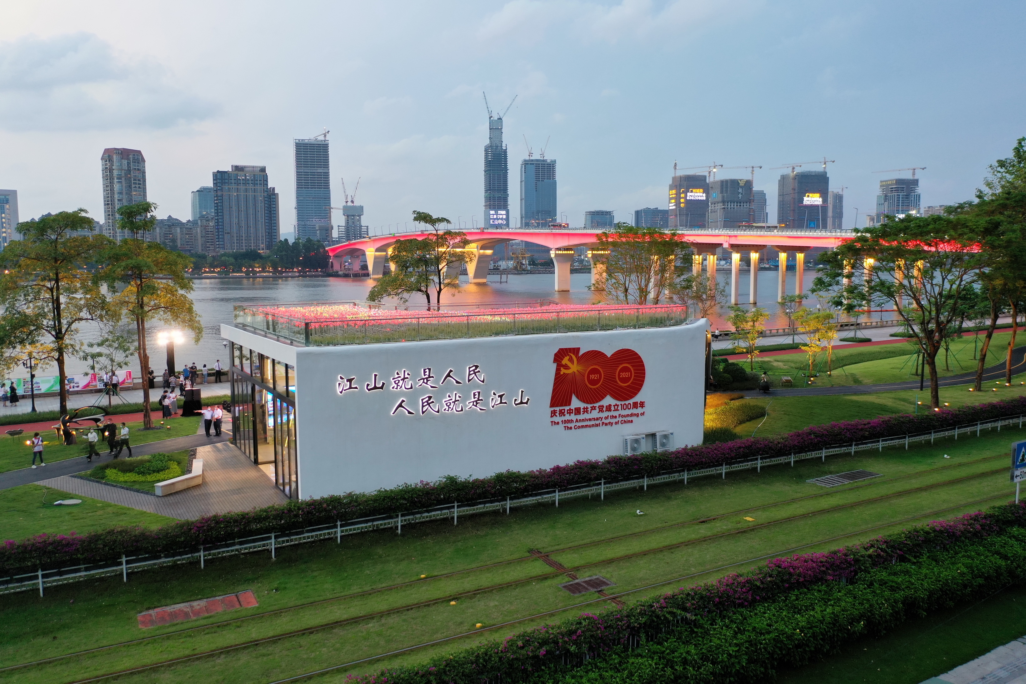 “我爱您,中国共产党!”6月30日晚,广州市海珠区在阅江路碧道上的“新时代驿站·会展东”举行庆祝中国共产党成立100周年亮灯仪式,海珠区18条街道的户外大屏同时亮起这句饱含深情的话语。