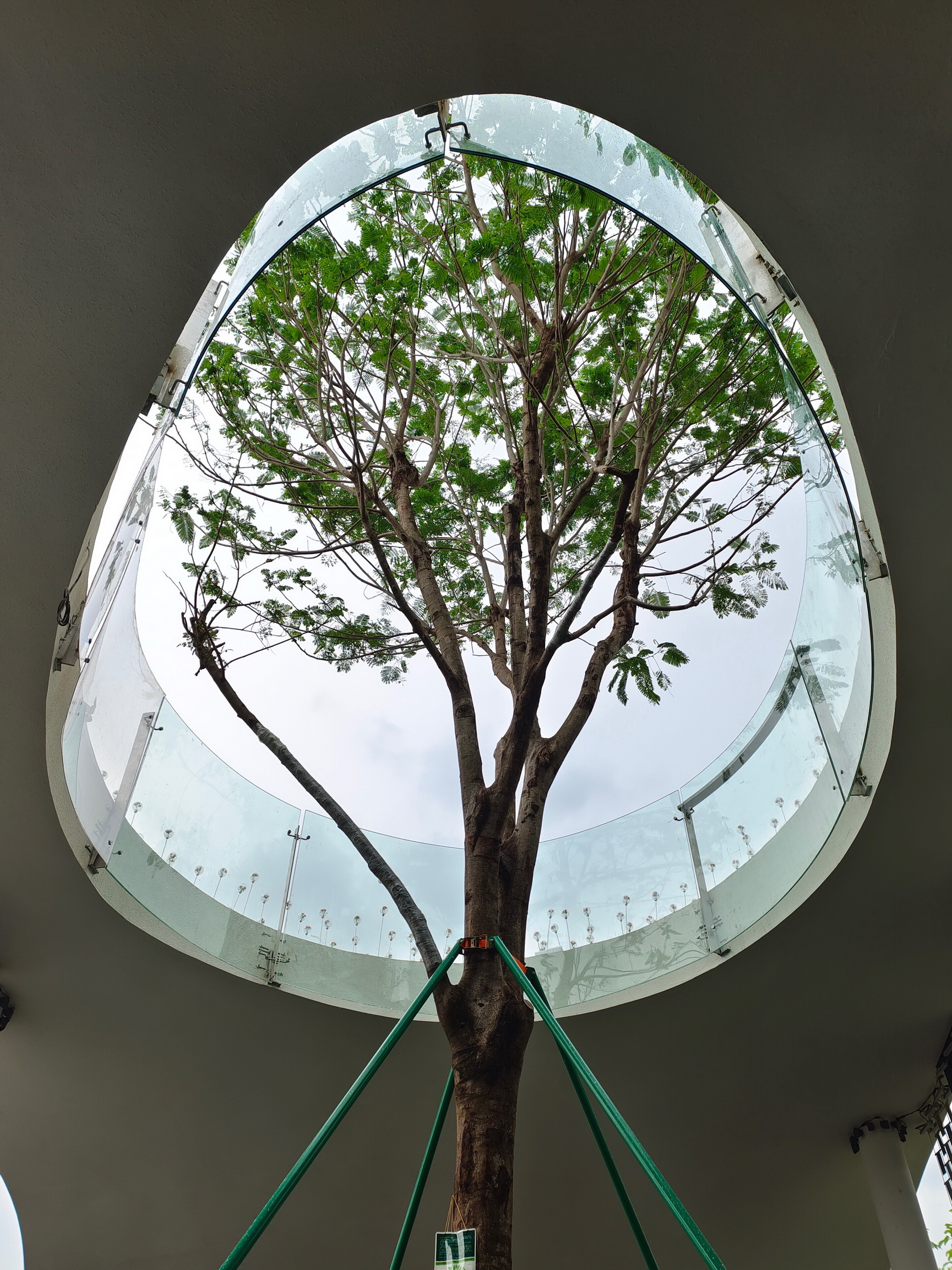 屋面坡道满布5000个芦苇灯和生态绿篱,坡道中的水滴孔伸展出一棵凤凰木,广场上放置雕塑大师梁明诚的作品,白天晚上各呈现别致的风景。驿站贯彻“生态+科技”理念,展示区以“老城市新活力”为主题,分为“印象海珠”“魅力海珠”“活力海珠”“生态海珠”和“创新海珠”五个板块,向市民全方位展示了海珠形象。智能阅读区融入“听见新时代”平台,市民扫码即可读原著、学原文、悟原理。互动区汇聚了海珠区多家人工智能和数字经济企业的成果,如党建智能机器人、时光“微”邮筒、智慧纸笔课堂、多功能无人机等,吸引市民参与互动。驿站还有多功能智慧大屏幕,市民现场可以“我与党旗合影”“我与国旗合影”“我在海珠留个念”。驿站还设置了服务区,为市民群众提供休憩的港湾。