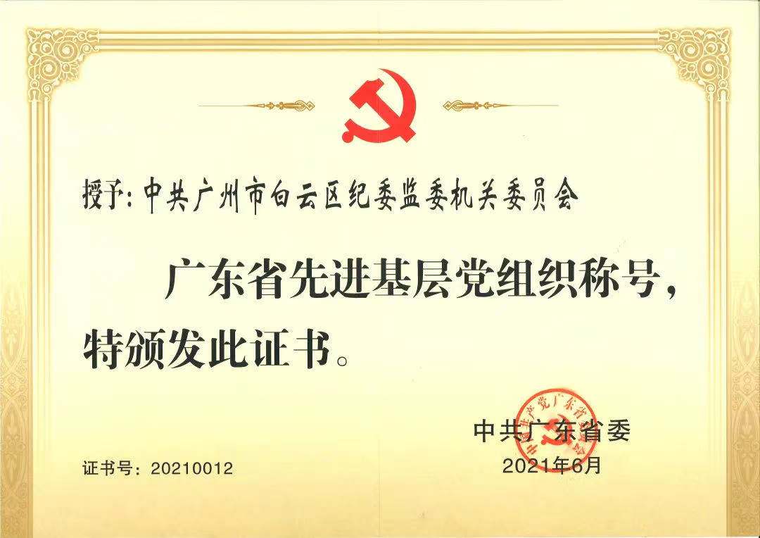 6月29日,中共广州市白云区纪委监委机关委员会被中共广东省委授予“广东省先进基层党组织”荣誉称号。