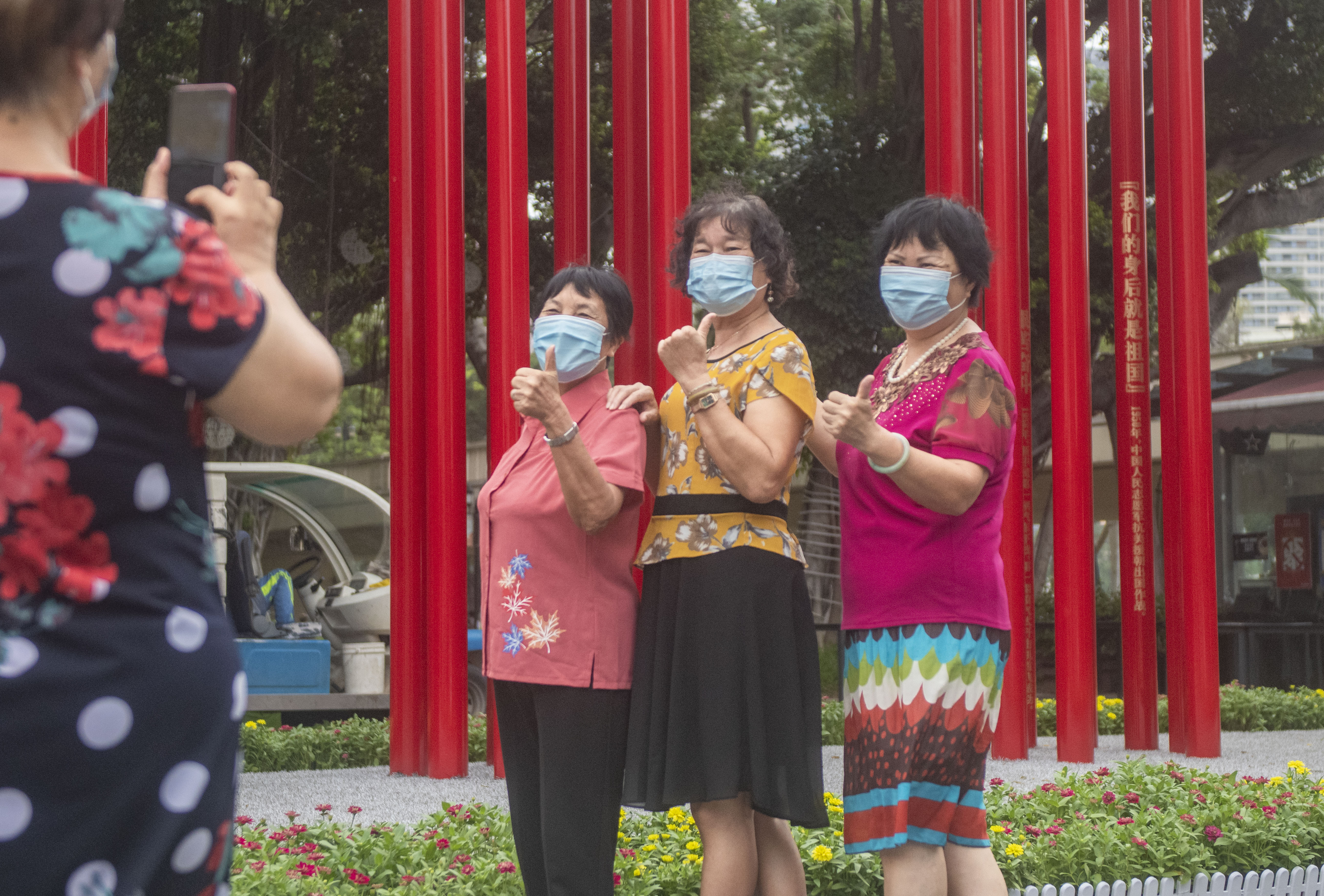 “看到祖国欣欣向荣,非常开心。广州非常美丽,市民的生活越来越好。”市民赖女士在广州市人民公园兴奋地用手机拍照,她想将靓照留在手机里带给家人看。