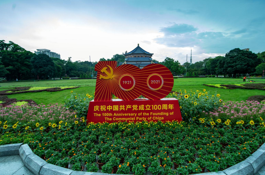 在庆祝中国共产党成立100周年之际,无论是珠江核心景观带、城市新中轴线和城市主出入口、城市主干道、市区公园景区,还是中共三大会址纪念馆、海珠广场等重要纪念场所,广州正被花海包围,披上了红装。广州全新打造一批展示中国共产党革命初心、彰显英雄之城精神的红色文化地标,在全社会营造出庆祝建党百年的浓厚氛围。