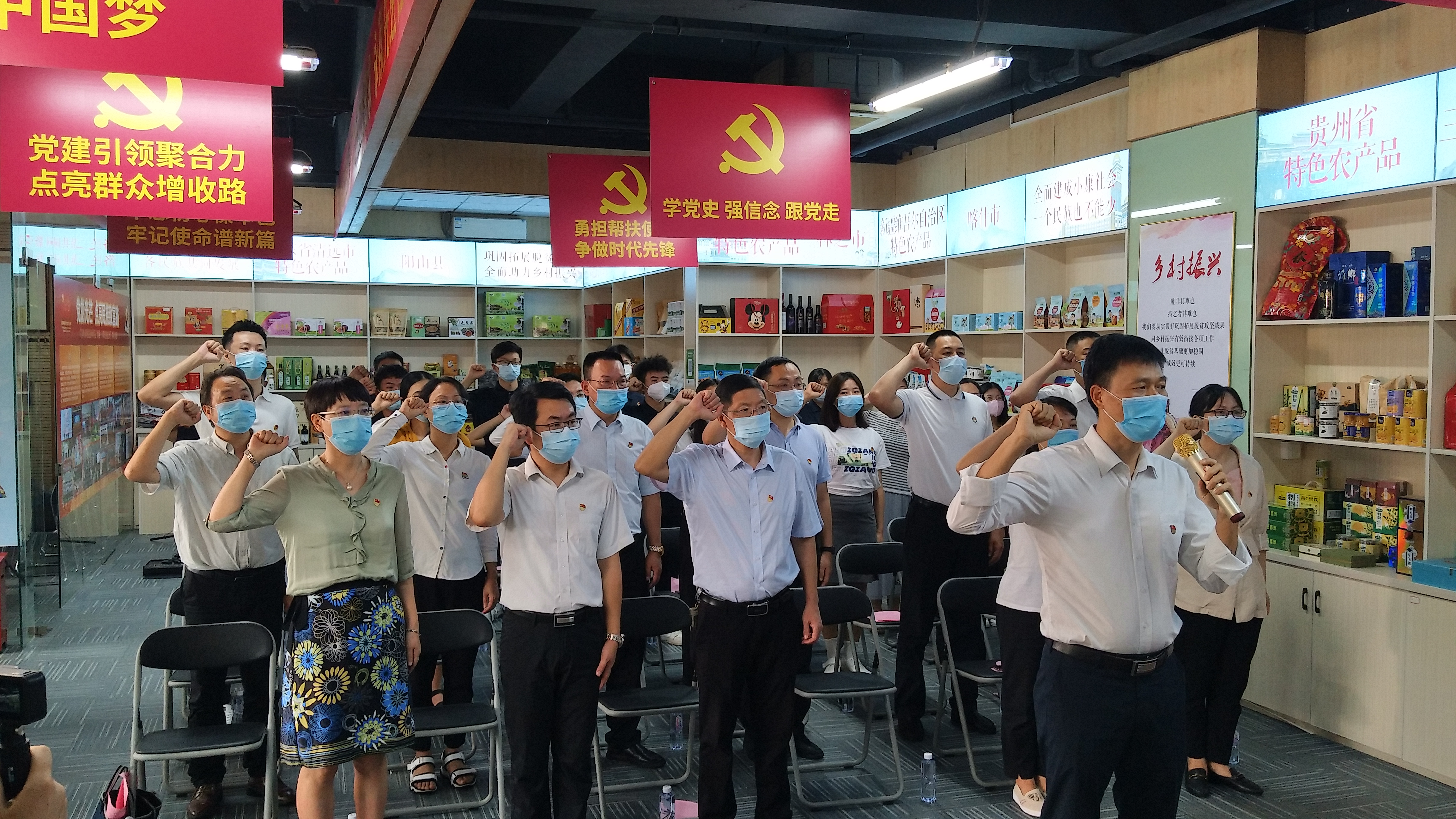 活动中,大家满怀着对党的崇高敬意,全体起立合唱《没有共产党就没有新中国》,深情朗诵毛主席的《沁园春·雪》,并重温入党誓词。大家右拳高擎,神情庄重,面对鲜红的党旗庄严宣誓。铿锵誓言,久久回荡,表达了对党的忠诚和为共产主义事业奋斗终身的决心。