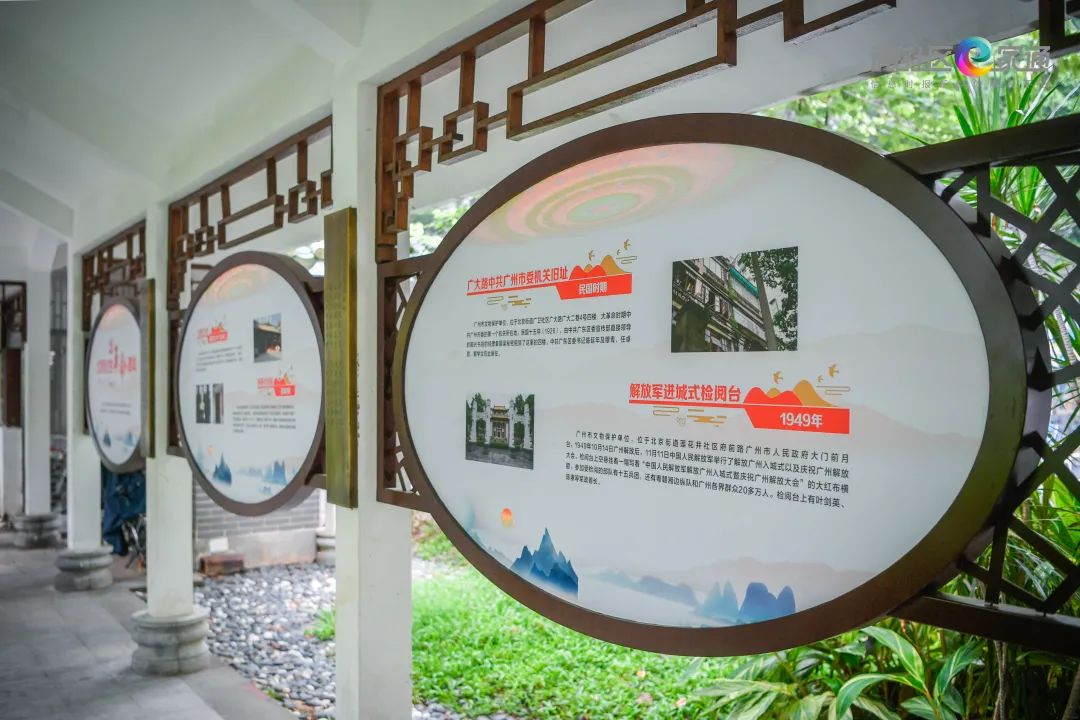在党史知识长廊,以图文并茂的形式介绍了北京街辖内的红色革命遗址。经统计,越秀区北京街辖内红色革命相关不可移动文物共有9处,其中广东省文物保护单位2处、广州市文物保护单位2处、越秀区登记保护文物单位5处。