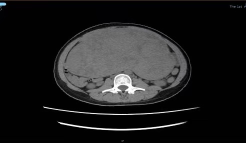 术前CT检查现实腹腔内有巨大肿物