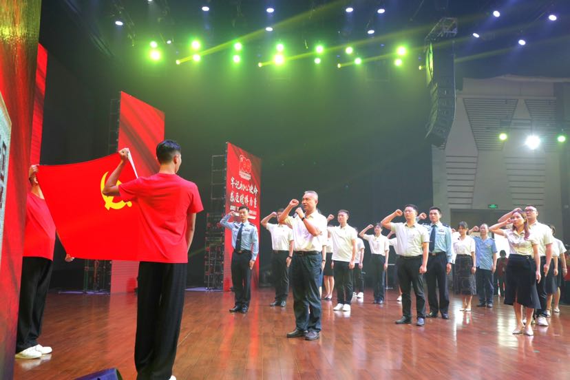 “我志愿加入中国共产党,拥护党的纲领,遵守党的章程,履行党员义务……”分享会首先举行了入党宣誓仪式,番禺区委常委、组织部部长、党校校长唐力明面对庄严的党旗,郑重地举起右手,带领来自全区各基层党(工)委的16名新入党党员代表,向党旗庄严宣誓。一句句铮铮誓言,让新党员们牢记了初心使命,肩负起责任与担当。