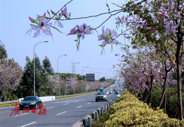 记者了解到,东南西环高速东圃大桥至丫髻沙大桥区间7.9公里成功实现绿化升级,种植大腹木棉、红花紫荆等植物,打造出城内高速靓丽风景线。南沙港快速路“仑头-细沥”段30.1公里绿化带种植了宫粉紫荆、黄槐等植物,打造出以南亚热带风情植物景观为特色的绿色长廊。广河高速八斗、中新、二龙等立交37.6公里绿化升级,配合沿途山川景色,呈现出靓丽景观。大广高速对“中和里-地派”68.5公里路段种植勒杜鹃、夹竹桃等多类苗木,将远处优美山景纳入道路景观中,形成“山水画廊、绿色交响”的主题特色景观。花山北立交、平沙立交等处种植开花树种和疏林草地,形成四季有花、车在花中行的道路景观。