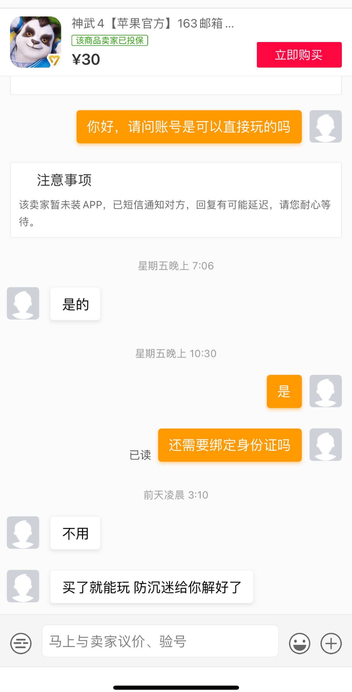 在游戏电商平台,记者看到有大量玩家直接出售已认证账号,并称账号已绑定成年人身份证,不受防沉迷模式限制。记者尝试在游戏电商平台的《神武4》专区搜索,结果显示已过防沉迷系统的账号,价格在30~70元不等。“直接输入账号就玩游戏了。”有卖家回复记者。
