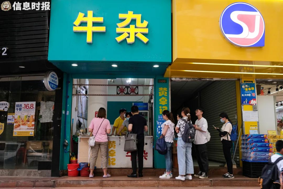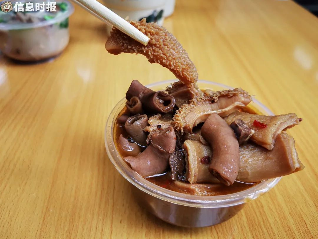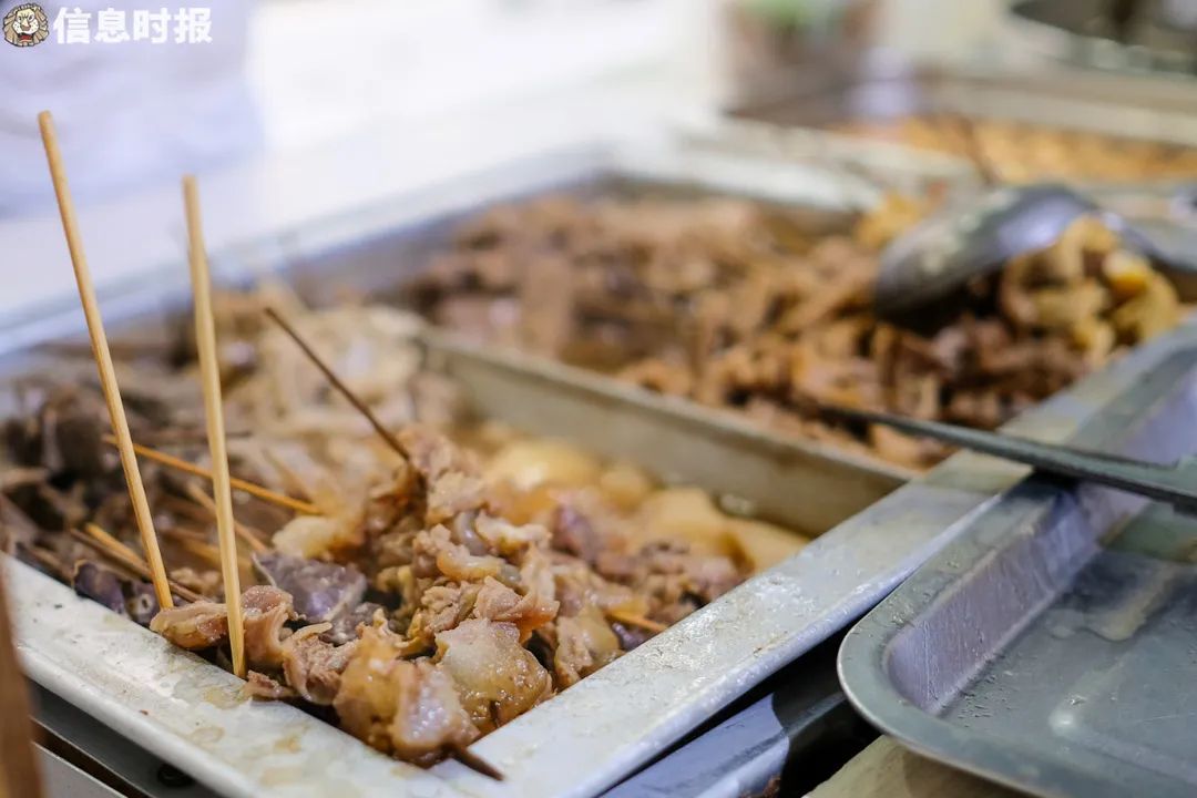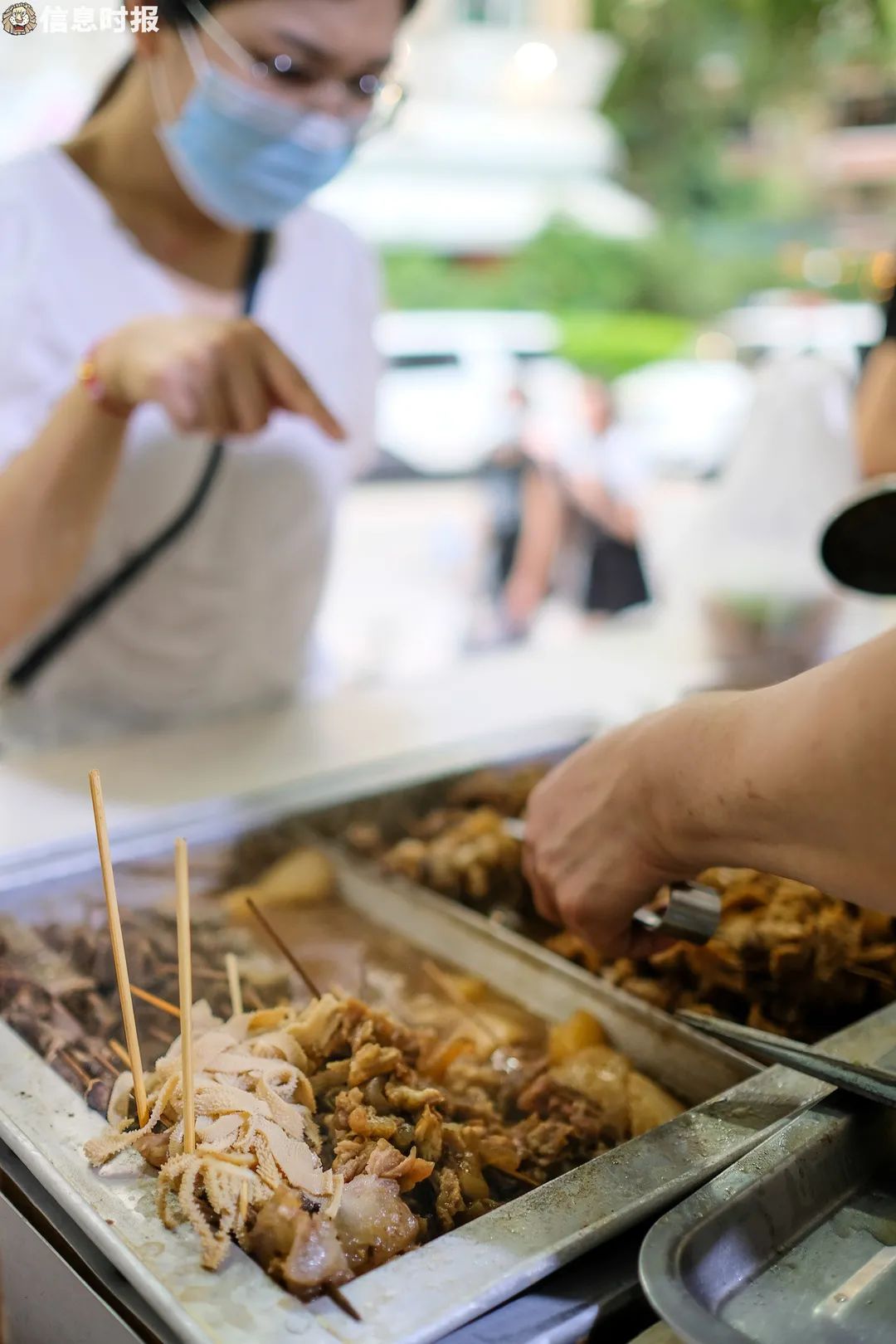 “两串肠、两串肺、两串肚,再来一串面筋和一份萝卜。”每天傍晚6点,位于江南西紫龙大街上的黄卓记牛杂档刚开铺没多久,门前就被前来觅食的人围得水泄不通。