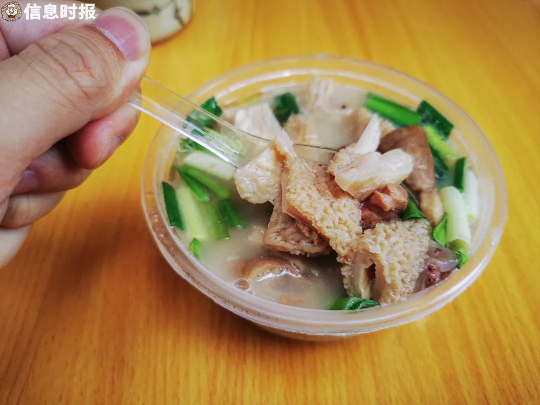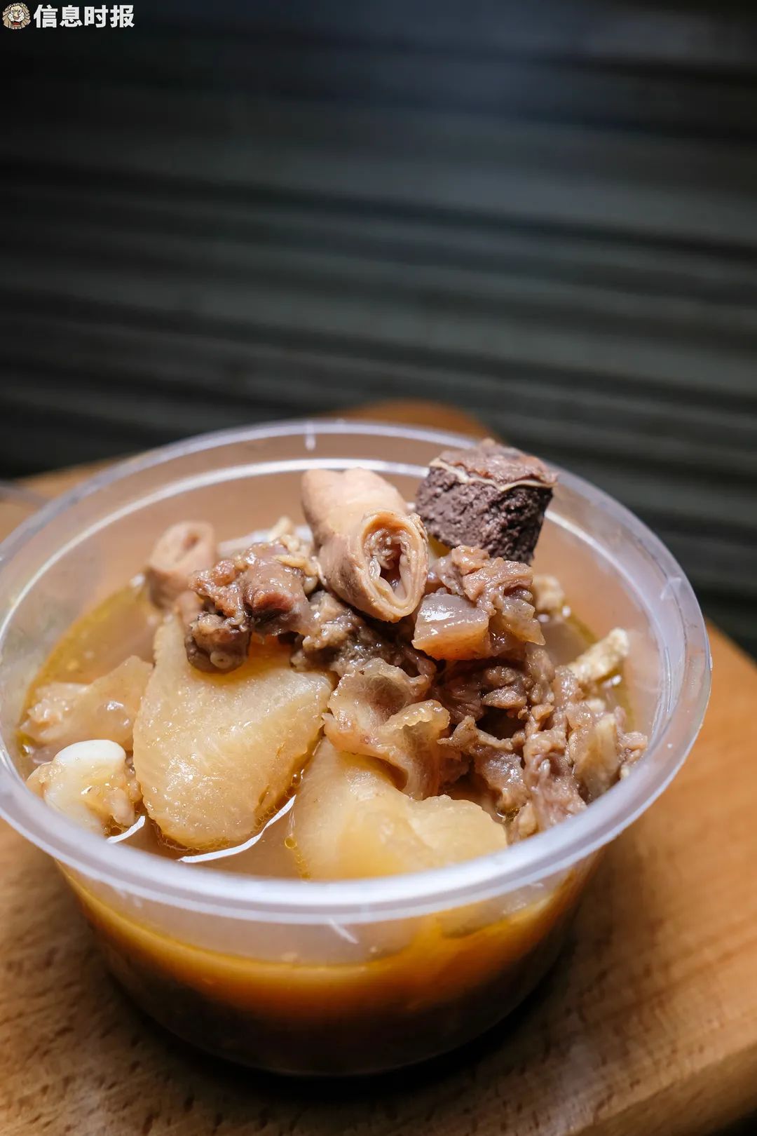 “老板娘,你就先卖一份给我吧,今天有朋友来家里坐,我就想打包一碗回去给她尝尝。”早上不到11点,位于西华肉菜市场对面的牛佬牛杂汤尚未到营业时间,门前就已经有三三两两的街坊在半掩的拉闸门前张望。老板娘刚从厨房步至店面,为热辣辣的牛杂汤加最后的调味料时,有食客已迫不及待冲上前要求打包招牌牛杂汤。