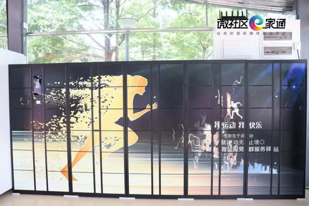二沙岛体育公园党群服务驿站占地约50平方米,四周全玻璃透明设计,致力打造集便民服务、娱乐健身、医疗救助、急救推广、公益讲座为一体的综合平台,站内配置了自动体外除颤器(AED)、急救包、共享雨伞、饮水机、自动饮品售卖机等设备,并划分了问询区、休息区、阅读区等功能区域。
