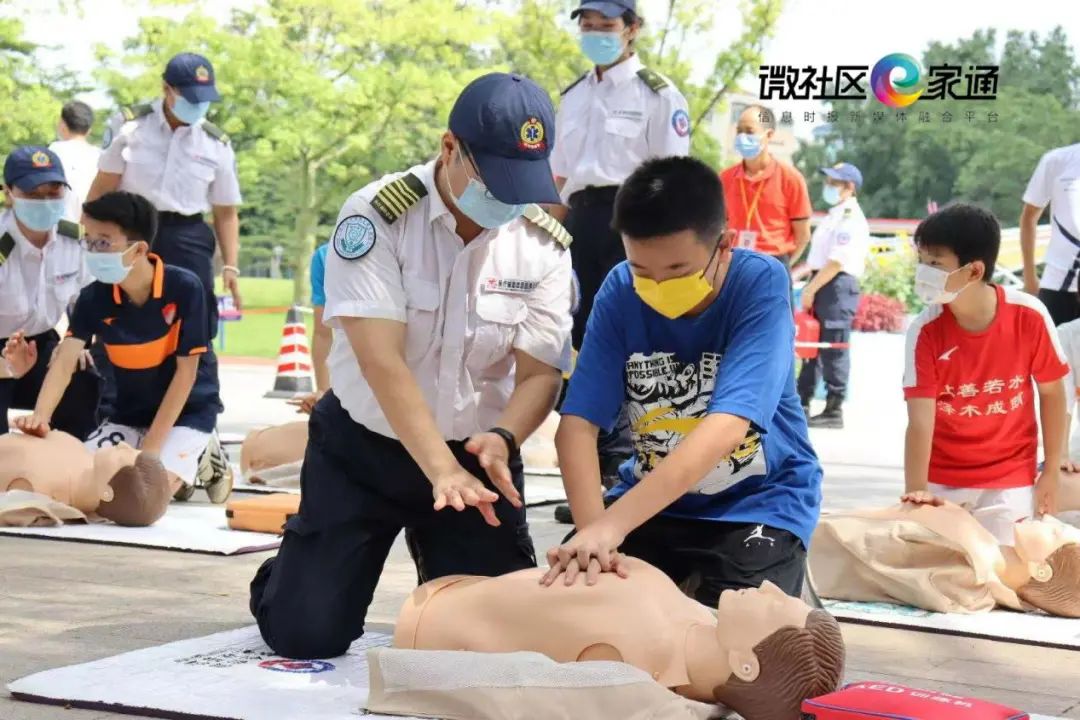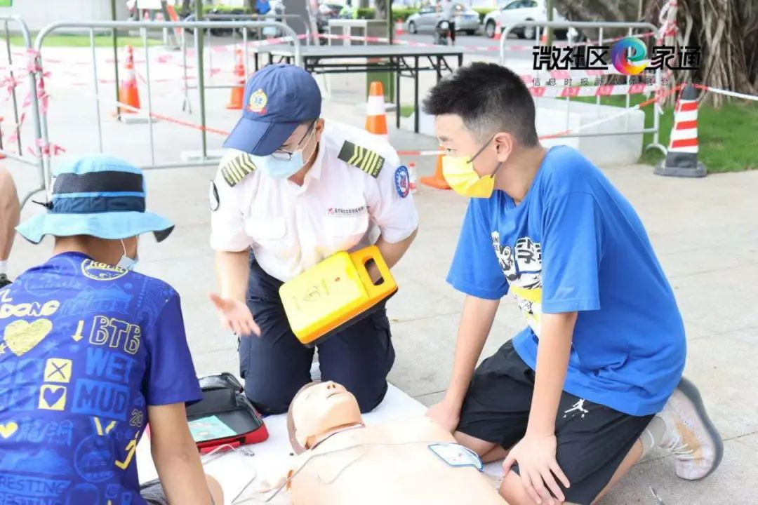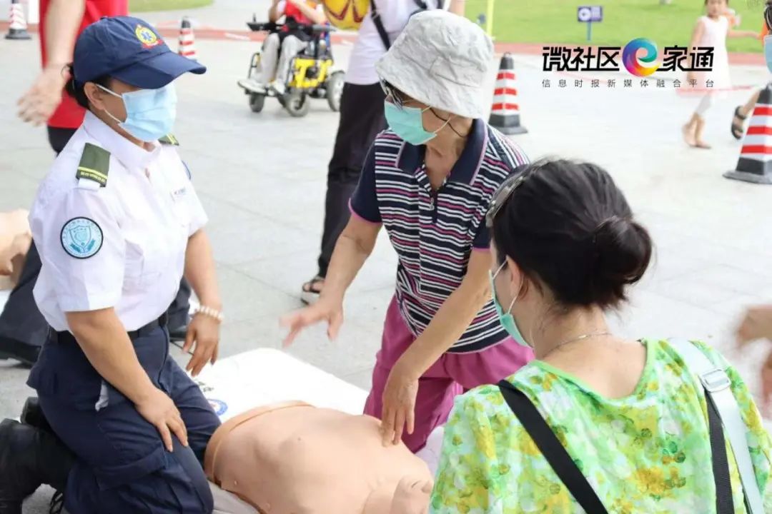 随后,参与活动的群众在培训师的带领、指导下,通过对“模拟人”实施心脏复苏抢救实操,了解实战中的操作要点。