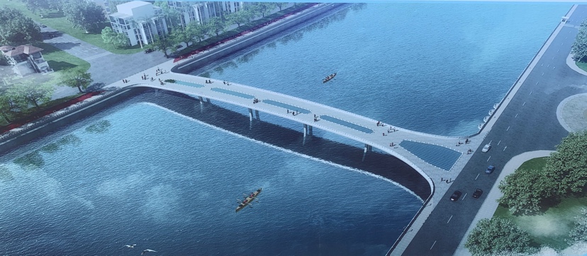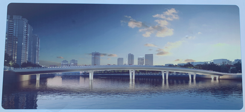 据介绍,二沙涌人行桥将采用混凝土钢构的建造形式,新建桥梁面积达到1547平方米,桥梁两端遇到路用圆弧相接,桥梁整体平面为直线型,桥梁总宽15米,全桥桩基础为28根。