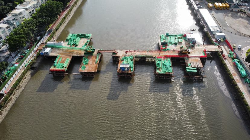 “目前搭建的临时施工平台是为了对二沙涌附近的地质情况进行勘探,从而进一步深化结构设计方案。”该负责人表示,目前掌握的情况来看,二沙涌附近的地质情况并不十分复杂,项目也在市交通运输局的指导下,按照计划顺利推进中。“竣工后,市民可以步行或骑单车通过桥梁,不过机动车不能通行。”