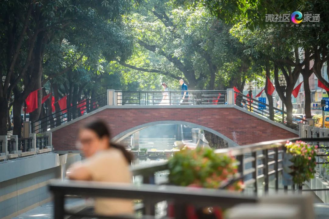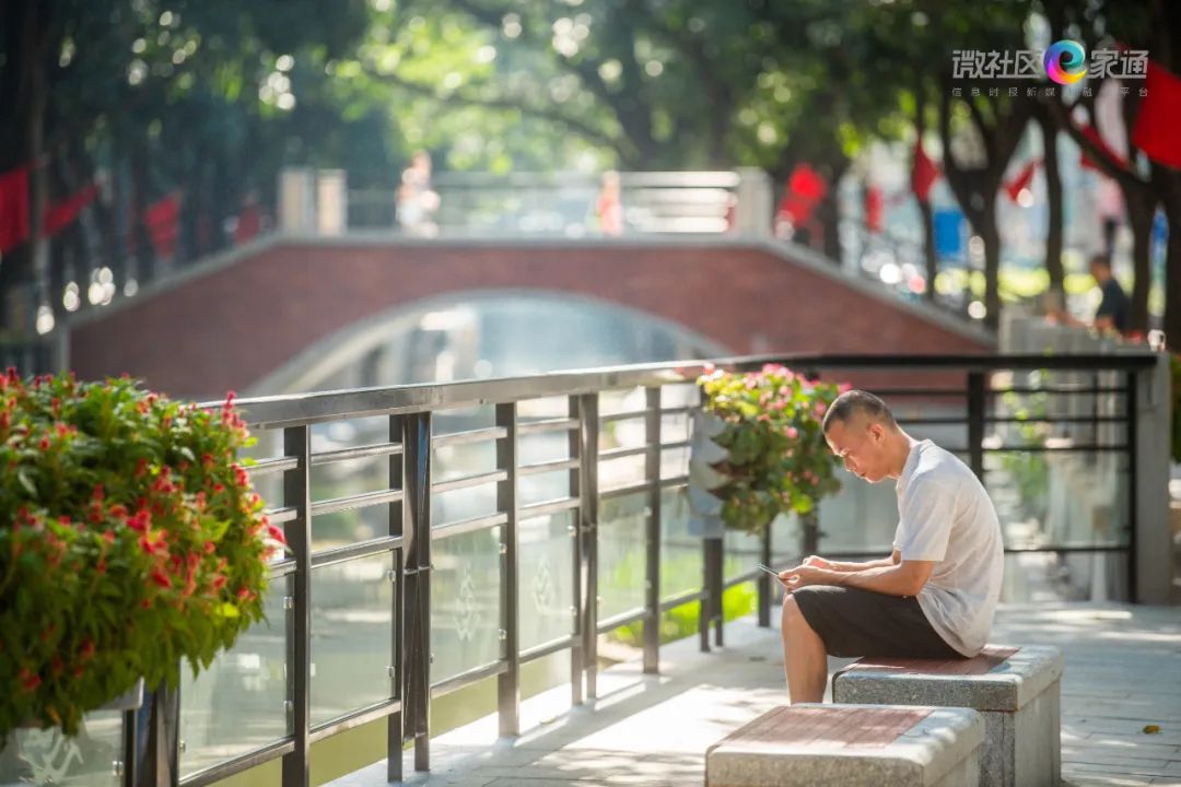 小e走访发现,完成改造后的新河浦涌保留了最大的特点 —— 根深叶茂的两岸大榕树,并增设了人行桥,市民随时可以穿行在河涌两岸,而不需要像过去一样绕行一大圈。同时,将过去密集的绿化带改造通透疏朗的绿化景观,增设观景休息设施,大大方便了市民和游客在此休憩。