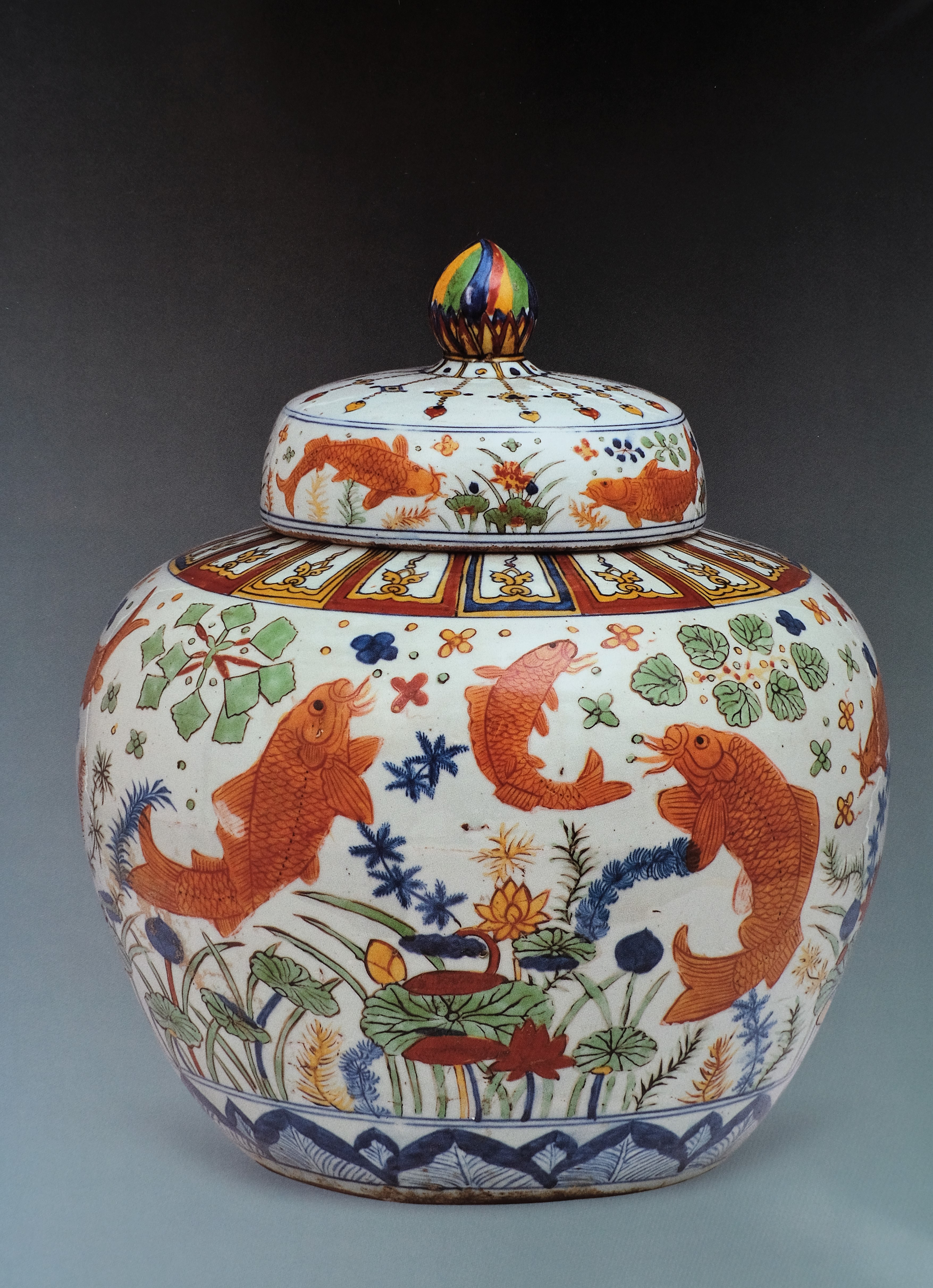 图: 明嘉靖五彩鱼藻纹盖罐(插图翻拍)