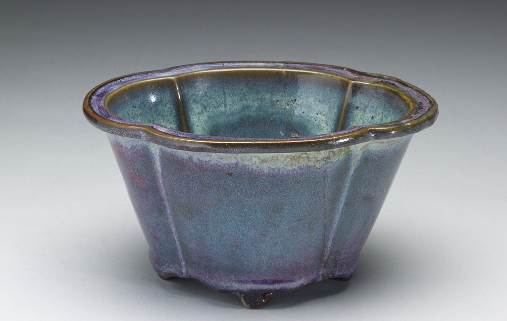 图: 金—元 钧窑天蓝葡萄紫海棠式花盆(插图翻拍)