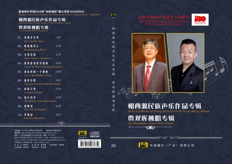 为庆祝中国共产党成立100周年,中国唱片(广州)有限公司与星海音乐学院共同打造聚焦中国民族优秀原创歌曲专辑暨星海音乐学院“创新强校”重大科研项目——“广东省当代作曲家艺术歌曲演唱研究”成果《相西源民族声乐作品专辑 贾双辉独唱专辑》。该专辑的出版标志着这一重大科研项目成果的完美收官。