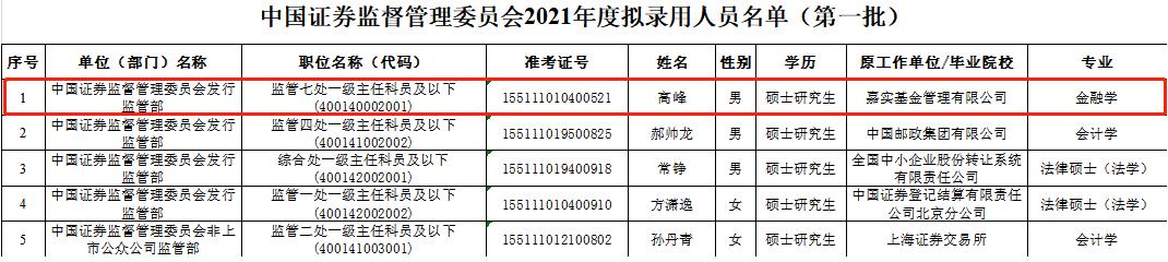 为何突然卸任?证监会的一份拟录用名单给出了答案:高峰去做公务员了。