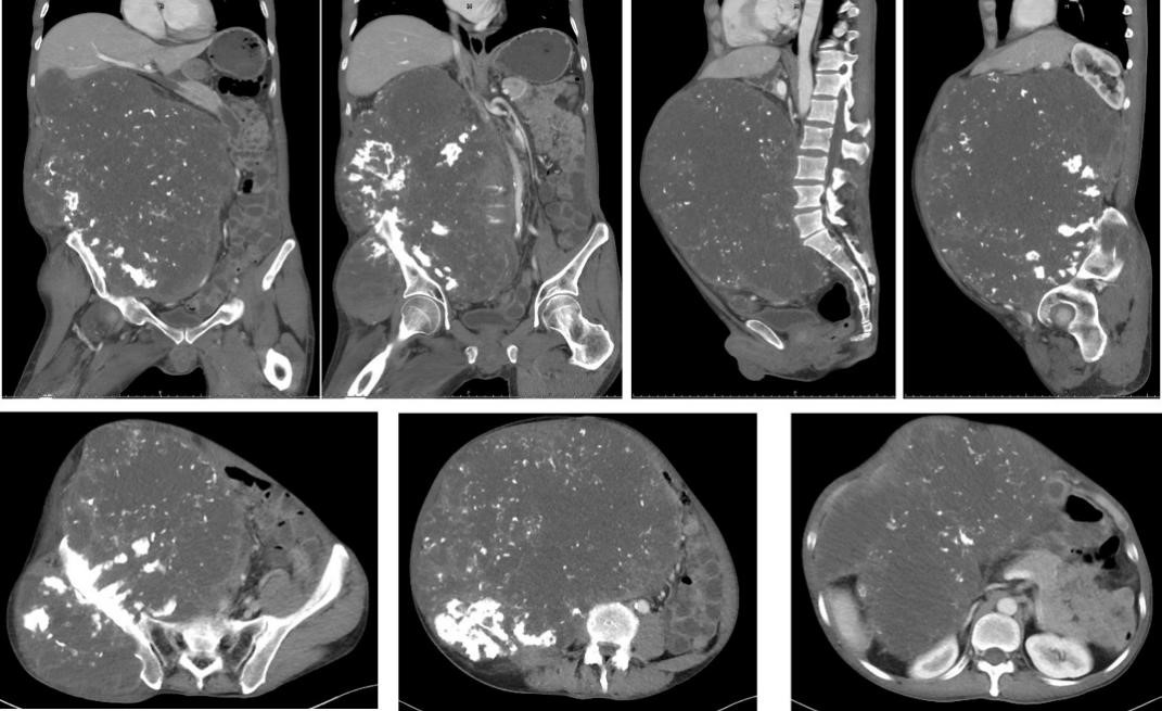 他先后辗转北京、广东、广西等地多家医院骨肿瘤专科求医,被诊断为骨盆软骨肉瘤。由于肿瘤巨大,手术难度大,患者只得采用介入栓塞和冷冻消融治疗,但疗效不好。眼看肿瘤越长越大,患者几近崩溃。